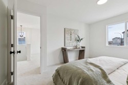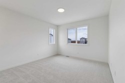 Welcome to The Romeo in Rangeview—Calgary’s first garden-to-table community. Situated on a desirable corner, extra-wide lot, this home offers added space and curb appeal. Features include a 9’ foundation, separate side entry, upgraded 200 amp panel, and a widened garage. On the main floor, a convenient mudroom leads you into a walkthrough pantry that flows perfectly into your kitchen. A spacious nook and great room is capped off with a cozy fireplace. Stylish railing leads you upstairs where you'll find a bonus room, a convenient laundry room and a luxurious 5-piece ensuite in the primary retreat to go along with 3 bedrooms. Thoughtfully designed for modern living, The Romeo delivers comfort, functionality, and lifestyle in one of Calgary’s most unique communities. Photos are representative.