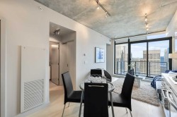 Discover elevated urban living of the iconic 6th and Tenth building, where sleek contemporary design pairs seamlessly with the energy of downtown Calgary. This one-bedroom, one-bathroom residence showcases captivating north-facing views of the city skyline, including the striking silhouette of the Calgary Tower. With 400 square feet of intelligently designed space, the home is ideal for professionals or anyone drawn to a dynamic, city-centered lifestyle. Inside, the interior exudes a refined industrial vibe, highlighted by exposed concrete ceilings and feature walls that add texture and character. Floor-to-ceiling windows flood the space with natural light, creating an airy, open atmosphere. The layout is thoughtfully crafted without a den, ensuring that every square foot is optimized for comfort and function. Step outside onto your private balcony, complete with a gas BBQ hookup, and take in the panoramic cityscape while enjoying al fresco meals or evening drinks. The kitchen is a modern showpiece, equipped with stainless steel appliances, a gas cooktop, quartz countertops, and the convenience of in-suite laundry. Residents of 6th and Tenth enjoy access to a suite of exceptional amenities, including a Sky Garden Lounge, an outdoor pool, a fully equipped fitness center, a beautifully landscaped terrace with sweeping city views, and around-the-clock concierge and security. Secure bike storage supports an active, car-free lifestyle. Located in the vibrant heart of Calgary, the building boasts a near-perfect walk score of 98 and a bike score of 94. Everything from boutique shops and top-rated restaurants to craft breweries and trendy cafés is just steps away. Start your morning at Monogram or Analog Coffee, grab brunch at The Beltliner, or unwind at neighborhood favorites like Pigeonhole and Last Best Brewing & Distillery. Outdoor recreation is equally accessible, with Prince’s Island Park and the Bow River pathways nearby, along with public transit options including bus stops and the LRT. For investors, this unit presents a unique opportunity with flexible building policies that allow short-term rentals such as Airbnb. Its central location and contemporary appeal make it a compelling income-generating asset. Stylish, smart, and situated in one of the city’s most desirable addresses, this condo at 6th and Tenth is more than just a home—it’s a lifestyle. Reach out today to schedule your private showing.
