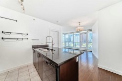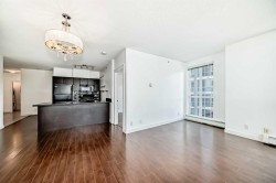 Welcome to Riverfront Pointe! This bright 7th floor west corner suite offers 2 bedrooms, 2 bathrooms + a flex/office area with unobstructed views of the Bow River and Downtown skyline. The open-concept layout features granite counters, designer tile backsplash, black appliances, eating bar, laminate flooring, and floor-to-ceiling windows that flood the home with natural light. The primary bedroom includes a 4-piece ensuite, while the second bedroom and full bath add flexibility for guests or a home office. In-suite laundry adds everyday conveniencBuilding amenities include a fitness centre, landscaped courtyard, concierge service, keyless entry, bike storage, and a titled underground parking stall located just steps from the elevator. Enjoy the ultimate urban lifestyle—walk to the Calgary Zoo in 10 minutes, City Hall LRT in 2 blocks. Enjoy being steps away from river pathways, parks, Chinatown, Eau Claire, and the best of downtown dining and entertainment.An excellent investment opportunity—previous tenant paid $2,500/month. Pet-friendly (with board approval).