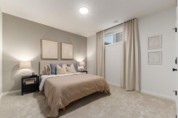 QUICK POSSESSION! This Children’s Hospital Lottery Home exudes grandeur in every detail, with meticulously chosen materials curated to create an atmosphere that captivates from the moment you enter. Inspired by modern Scandinavian design, it embraces cozy hygge vibes while offering the space and functionality families desire today. The main floor welcomes you with soaring 10-foot ceilings and an airy, open layout that feels both warm and impressive. At its heart is a beautifully upgraded kitchen, finished to the ceiling with crisp white cabinetry, quartz countertops, a brand-new stainless steel appliance package, and a spacious walk-in pantry. The open-concept design flows seamlessly into the living room, where a modern fireplace creates both a stylish focal point and a sense of comfort. A large dining area overlooks the private backyard, with glimpses of the rolling hills beyond. Completing this level is a flexible room that can adapt to your needs — whether as a home office, guest bedroom, mudroom, or playroom. Upstairs, 9-foot ceilings and expansive windows flood the home with natural light. Double doors lead to the serene primary bedroom, a true retreat featuring a spa-inspired ensuite with dual vanities, a soaker tub, and a generous walk-in closet. In the opposite wing, two additional bedrooms — each with their own walk-in closet — share a well-appointed family bath. A convenient laundry room is thoughtfully designed to keep life organized. At the center of it all sits a dramatic bonus room with a vaulted ceiling and striking blue feature wall, perfectly suited for movie nights, games, or quiet relaxation while also offering a natural separation between the primary suite and secondary bedrooms. The lower level continues the sense of openness with 9-foot ceilings and a beautifully executed side entrance, providing the a space for in-laws. A dedicated wellness room and a spacious recreation area enhance the lifestyle appeal, while an additional bedroom and full bathroom make this level ideal for guests, older children, or extended family. Outside, mountain-inspired architecture with timber accents blends seamlessly into the surroundings. With full landscaping and a finished deck already complete, this turnkey home is ready to be enjoyed from the moment you arrive. Nestled in Southwest Calgary, the community of Sirocco offers everything from scenic golf course views to vibrant local amenities and over 5 km of connected pathways. Honoring its heritage while embracing modern convenience, Sirocco is a place where rolling foothills and nearby trails bring the peace of country living within easy reach of the city. Don't miss on experiencing this spectacular well thought out home.