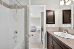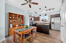 Welcome to this beautiful NO-CONDO-FEE townhome in the highly sought-after lake community of Mahogany, offering year-round access to the beach, clubhouse, and an array of outdoor amenities. This immaculate home combines comfort, functionality, and style, with a thoughtfully designed floor plan that takes full advantage of the abundant natural light streaming through the large windows.The main floor boasts 9-foot ceilings and an inviting open-concept layout that seamlessly connects the living, dining, and kitchen areas—perfect for both relaxing and entertaining. The kitchen is well-appointed with granite countertops, stainless steel appliances, and ample cabinetry, complemented by a blend of laminate and tile flooring that adds both warmth and durability.Upstairs, you’ll find two spacious primary bedrooms, each offering a walk-in closet and private ensuite for ultimate convenience and privacy. One of the bedrooms also includes a versatile den area, ideal for a home office or cozy reading nook.The unfinished basement provides plenty of potential for future development—whether you envision a recreation room, home gym, or extra storage space. Outside, enjoy a low-maintenance yard, a welcoming front porch, and a private backyard complete with a cement patio and gas grill hookup, perfect for summer barbecues and relaxing evenings. A detached double garage offers secure parking and additional storage.Recent upgrades include brand-new carpet (2025), a new hot water tank (2025), and a newer oven (2023), making this home truly move-in ready.With its excellent layout, modern finishes, and access to one of Calgary’s most desirable lake communities, this Mahogany townhome is a perfect blend of lifestyle and value.