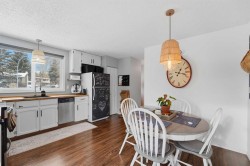 Tastefully updated 2-storey townhouse where comfort and coziness come together beautifully. Upon entry, you are welcomed by a modern mudroom that sets the tone for the home. The main floor features a spacious kitchen equipped with stainless steel appliances, offering both style and functionality for everyday cooking. A bright breakfast nook provides the perfect space for family meals, while a large window makes even doing dishes more enjoyable.Off the kitchen, the comfortable living room showcases a stylish accent wall and patio doors leading to an inviting backyard with a deck and mature trees—ideal for relaxing after a long day or enjoying your morning coffee. This level is completed by a convenient 2-piece bathroom.Upstairs, you’ll find three well-sized, bright bedrooms, a full bathroom, and a spacious closet offering ample storage for all your belongings.The recently developed basement adds even more living space, featuring generous storage behind a modern barn door, a large family room perfect for a kids’ play area, media room, or man cave, plus a versatile den ideal for a home office or quiet retreat.This home is truly an owner’s pride, with new fencing, gutters, and insulation completed in 2024 for added peace of mind.Enjoy a highly convenient location within walking distance to Superstore and the C-Train LRT station, and close to schools, Southcentre Mall, public library, golf courses, Trico Centre, Canyon Meadows Aquatic & Fitness Centre, and a variety of shopping options including Walmart and Canadian Tire.Additional highlights include your own private parking stall just steps away. This townhome offers the comfort of condominium living with the feel and warmth of a single-family home.