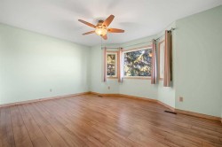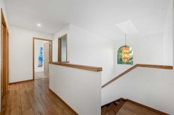 Located on a quiet, tree-lined street in sought-after Shawnee Slopes, this spacious 2,467 sq. ft. detached home offers a rare blend of character, comfort, and peace of mind. From the moment you arrive, you’ll notice the classic clay tile roof, exposed aggregate driveway, and mature landscaping that set a timeless tone for the property. Step inside to discover a home designed for both function and warmth, featuring a bright, well-defined main level with fresh paint, a cozy fireplace framed by custom built-ins, and large sliding doors that lead to the tranquil backyard.At the heart of the home, the kitchen offers plenty of cabinetry, stainless steel appliances, and a smart layout that connects seamlessly to the dining and living spaces. A sun-filled solarium with skylights and panoramic windows invites natural light throughout the day, the perfect space for dining, relaxing, or creative pursuits. Upstairs, the expansive primary suite features a private balcony and a luxurious ensuite complete with a deep jetted tub and steam shower, bringing a spa-like touch to daily living.Recent updates provide lasting value and confidence: large steam shower w/rainwater head, large jetted tub, two newer furnaces, 60 gal. commercial grade water heater, new central vac (w/hose for hose and garage), new triple glazed Lux windows, poly-b piping, removed, hot water hose bib in the garage, BBQ gas line in backyard and new acacia hardwood flooring that adds warmth and modern appeal. Outside, the 7,200+ sq. ft. lot feels like a private park, backing onto a peaceful green space and walking path, surrounded by mature evergreens that offer shade and privacy.Conveniently located near Fish Creek Park, the LRT station, top-rated schools, and all the amenities of Shawnessy and Millrise, this home combines a serene natural setting with everyday convenience. With its thoughtful updates, flexible layout, and solid construction, it’s ready to be personalized and enjoyed for years to come. Book your private showing today.