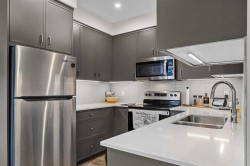 Welcome to The Slopes in Stewart Creek, a modern 1-bedroom, 1-bath suite built in 2022 that delivers the mountain lifestyle with a polished, upscale finish. This bright and beautifully designed home offers 626 sq ft of interior living space and is packed with luxury upgrades, including quartz countertops, under-cabinet lighting, premium kitchen backsplash tile, sleek stainless-steel appliances, an electric fireplace in the living room, and hydronic in-floor heat throughout to keep you cozy all winter long. The open-concept layout feels airy and functional, with high ceilings, large picture windows, and the signature wing-wall design that gives this development its distinctive look and flow. You’ll also appreciate in-suite laundry, one assigned energized parking stall, and easy access to additional street parking. Steps from Stewart Creek Golf Course and the Three Sisters pathway system, this is the perfect full-time home, weekend escape, or lock-and-leave basecamp in Canmore. Quick possession is available, so you can start enjoying it right away.