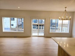 Fall Special Pricing. BRAND NEW, built in 2025, this stunning two-storey offers 2,413 sq.ft. of living space, a triple garage (28' x 26'6"), and a spacious 135’ south-backing lot with 44’ frontage. Quick possession is available. The bright, open main floor features a dining nook, modern kitchen with island, walk-through pantry (wood shelving), and a spacious mud room with bench and shelves. The family room includes built-in shelving and a cozy fireplace, while a private work-from-home office, two-piece bath, and open cathedral entry complete the main level. Upstairs hosts three bedrooms, including a generous 15' x 13'6" primary suite with tray ceiling, large walk-in closet (wood shelving), and a luxurious 5-piece ensuite with double vanity. A vaulted bonus room with fireplace, laundry room, and 4-piece main bath provide extra convenience. The bright, side-access walk-up basement is undeveloped with high-efficiency mechanical, roughed-in bath plumbing, and large windows for natural light. Quality finishes include ceiling-height cabinets, quartz countertops, upgraded lighting, vinyl plank, tile and carpet flooring, wood shelving in closets, and exterior stonework. Added value includes GST (rebate to seller), new home warranty, a rear deck (8' x 16') with vinyl cover, front sod and tree, and a $5,000 appliance allowance. Located in the family-friendly Scarlett Ranch community, just steps from schools, parks, and a pond, with quick access to Airdrie, Calgary, CrossIron Mills, and Didsbury Hospital—a little drive, a lot of savings!