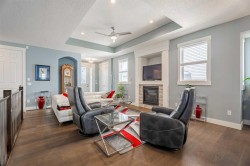 EXECUTIVE WALKOUT BUNGALOW BACKING ONTO POND/PFR + 3 CAR GARAGE, SOLAR PANELS, SUNROOM. This executive style 4 bedroom bungalow with 3 car garage backing onto green space will tick all your boxes! The open floor plan is perfect for entertaining or family gatherings. Enter to the main living area with beautiful hardwood floors, a tray ceiling and a gas fireplace. The heart of this home is no doubt it's bright chef's kitchen with an abundance of cupboards and counter space and a quartz island large enough to seat 4. High end KitchenAid appliances include an induction cooktop, built-in microwave, built-in oven, refrigerator and dishwasher(2025). Retreat to the private primary spacious bedroom with a large sitting area, huge walk-in closet and a luxurious 5 piece spa like ensuite. The laundry room, second bedroom/office with cheater door to a full bathroom complete the main floor. Head down to the amazing walk out basement with a great TV area, bar area, 2 bedrooms, a 5 piece bathroom and a dedicated workshop area. Whether you’re woodworking, repairing, crafting, or tackling home projects, this workshop provides the convenience of working from home without sacrificing comfort or storage space. Relax and unwind in the stunning sunroom, perfectly positioned to capture the views of the green space and a tranquil pond. Bathed in natural light through expansive windows, this inviting space is ideal for morning coffee, reading, or simply soaking in nature’s beauty year-round. The peaceful backdrop creates a private, calming retreat right in your own home. Not to mention the energy-efficient fully owned solar panel system. Designed to reduce utility costs and environmental impact, the solar array blends seamlessly with the home’s style while delivering year-round savings. This home is truly one of a kind with its 3 car garage, basement workshop, A/C, 3 season additional sunroom, hot tub, water softener, solar panels and backing onto a green space.