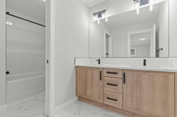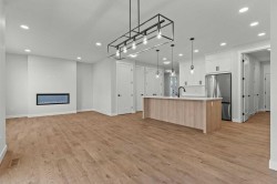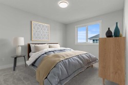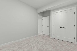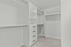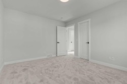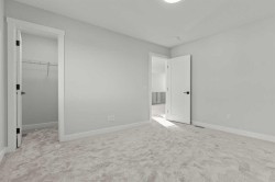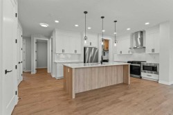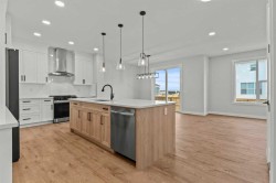 Welcome to 294 Kinniburgh Loop — a stunning 3,410 sq. ft. of finished luxury living, perfectly positioned on a walkout lot backing directly onto the pond, with breathtaking mountain views and a west-facing backyard made for afternoon and evening sun. This is one of the most coveted lots in Kinniburgh South.This exceptional home offers 6 bedrooms and 4 full bathrooms, including a main-floor bedroom with an adjoining full bathroom — ideal for guests or multigenerational living. The chef's kitchen is the heart of the home, anchored by a nearly 9-foot quartz island, full-height painted cabinetry, stainless steel appliances, and a spice kitchen for everyday cooking. The open-concept main floor flows through the living room — complete with electric fireplace — dining area, and a walk-through mudroom with garage access. No dropped beams. Clean sightlines throughout.Upstairs, a generous bonus room provides flexible living space, while the expansive primary bedroom offers a true retreat. The spa-inspired 5-piece ensuite features dual vanities, a freestanding soaker tub, glass shower with mosaic tile base, and a private toilet room — flowing directly into the laundry room and walk-in closet with built-in shelving. Two additional upper-level bedrooms share a beautifully finished 5-piece bathroom.The fully finished walkout basement adds 953 sq. ft. of premium living space with two additional bedrooms, a large wet bar with fridge, and direct walkout access to the backyard — where the pond, mountain views, and western sun await. Step outside to a full deck above and a concrete patio below, creating an outstanding outdoor living setup from top to bottom.This home is built to the Golden Standard — Golden Homes' industry-leading package of premium features included as standard in every build. From triple-pane oversized windows and true 9-foot ceilings on the main floor and basement, to a tankless hot water heater, HRV system, solar panel rough-in, smart home features, matte black hardware throughout, and premium landscaping — every detail is accounted for.A rare opportunity: walkout pond lot, mountain views, west-facing sun, and over 3,400 sq. ft. of finished space in one of Chestermere's most desirable new communities. Photos of similar model, Spec subject to change.