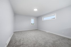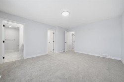 Discover the Pierce 2 - a modern, thoughtfully designed home by a trusted builder with over 70 years of experience. This energy-efficient home features designer-curated finishes, smart home technology, and moving concierge services included.The layout offers a walkout basement, a main-floor flex room with French doors, and a full bath with a walk-in shower. Only the garages are attached, providing the privacy and feel of a detached home. The sleek kitchen includes stainless steel appliances, a gas range, and a separate spice kitchen with pantry shelving. The great room features an electric fireplace, and the rear deck comes with a BBQ gas line.Upstairs are two spacious primary bedrooms, each with walk-in showers, including a luxurious five-piece main ensuite. Finished with LVP flooring, tile in bathrooms, and quartz countertops throughout. Built Green certified with triple-pane windows, high-efficiency furnace, solar-ready rough-in, EV charger rough-in, and a full smart home package.