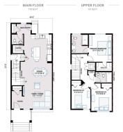 Discover the Eton, a move-in ready home in Fireside of Cochrane with 1,500 sq ft of stylish living space. Modern Prairie inspired architecture, features Hardie board siding front, black-framed windows, and an open-concept layout with luxury vinyl plank flooring. The rear-facing kitchen connects seamlessly to the backyard and includes Winter stained cabinets, quartz countertops, Samsung stainless steel appliances, a chimney hood fan, a large island, and a picture window above the granite sink. A functional back entry and walk-in pantry add convenience, while the front-facing great room is bright and inviting. Upstairs, the rear primary bedroom includes a dual-sink ensuite, complemented by upper-floor laundry and two additional bedrooms. Photos are representative.