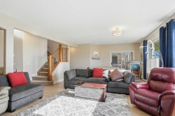 There is a specific feeling that comes with a 180-degree view of the Rockies, and at 40 Eagleview Way, that view is the focal point of the entire home. Situated in the Villas of Gleneagles, this walk-out bungalow was designed to let the landscape do the heavy lifting. Whether you’re looking out over the fairways of The Links of Gleneagles or watching the weather roll across the mountains, the backdrop is constant and unobstructed.The interior layout is intentional, moving from a quiet front foyer and private office into an open main floor that feels both expansive and connected. The ceilings are high, the hardwood is substantial, and the natural light is everywhere. In the kitchen, the focus is on clean lines and utility, centered around a large quartz island and custom white cabinetry that runs to the ceiling. A dedicated skylight ensures the space stays bright even on the rare grey day. The main living area is anchored by a gas fireplace with custom built-ins, and it opens directly onto a wrap-around deck built for people who want to spend time outside.The primary suite is a private retreat on the main level, notable for an ensuite that features its own skylight—a small detail that makes a big difference in the morning. Downstairs, the walk-out level is just as comfortable as the main floor, thanks to in-floor heating and luxury vinyl plank flooring, with 2 picture windows (84" x 68" each) facing the Rockies to the SW. It’s a functional space with a second fireplace, two legitimate guest bedrooms, a 4-pc bath, and clever additions like 2 built-in mini-fridges and deep storage. With central air conditioning, a layout that prioritizes a low-maintenance lifestyle, and maintenance-free grass and snow removal, this is a home for those who want the scale and views of a mountain estate without the constant upkeep. Reach out to me or call your favourite Realtor® to book your private showing today!