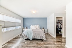 Welcome home to this exceptional semi-attached two-storey home located in the highly sought after community of River Song. This property is conveniently located walking distance to Bow Valley High School, kms of paths down to the Bow River, a quick drive into town over the Jack Tenant Bridge or out to the highway for great access to Calgary, Kananaskis and Banff National Park. This beautifully upgraded home includes an oversized single attached garage with storage and workshop area, large landscaped lot backing on green space and a HOT TUB! Inside you will find 4 bedrooms, 3.5 bathrooms and impressive 9’ ceilings on both the main and upper levels, ample space for the whole family! The modern kitchen offers stainless steel appliances, a tiled backsplash, white quartz countertops, a large centre island, and contemporary white cabinetry with storage, flowing seamlessly into the dining area and spacious living room highlighted by a natural gas fireplace with stacked stone surround, mantel and striking barn board feature wall to bring in plenty of warmth. The patio doors off the living room lead you to a fully landscaped, private backyard oasis ideal for outdoor entertaining. Including a hot tub where you can soak your worries away and a private fire pit area with paving stones and backing onto green space for ultimate peace and privacy. Upstairs, the generous primary retreat includes a walk-in closet and a 4-piece ensuite with double sinks, a large walk-in shower, alongside two additional bedrooms, a full 4-piece bathroom, convenient upper-level laundry, and a large bonus room with vaulted ceilings and views to the east. The newly developed basement showcases unique brick, barn board, and shiplap feature walls and includes a spacious recreation room perfect for guests, in-laws or the kids. You will also find the fourth bedroom and a 3-piece bathroom with in-floor heating! Book a showing today!