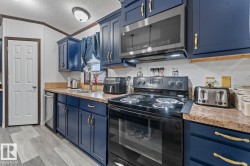 Affordable Home Ownership Starts Here! Step inside this beautifully renovated 3-bedroom, 2-bath mobile home, where comfort meets style in an open concept design. Home features a spacious kitchen, with freshly painted cupboards, a corner pantry, and a raised two-tier island—perfect for entertaining—plus the convenience of the laundry room just off the kitchen. The primary bedroom is truly a retreat, offering a massive layout, walk-in closet, and luxurious 5-piece ensuite complete with a corner soaker tub, separate shower, and double vanities. Fresh touches throughout the home include some new vinyl plank flooring, paint, patio door, giving the space a clean and modern feel. Whether you’re a first-time buyer or looking to downsize, this move-in-ready home offers incredible value. Stop renting and take the first step toward affordable home ownership!