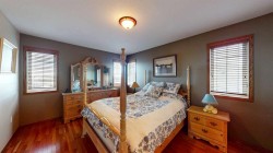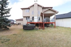 Beautiful Lacey-built home offering over 2,000 sq. ft. of well-maintained living space. The main floor features a spacious dining room, bright kitchen with granite countertops, and access to a partially covered deck. The living room includes a wood-burning stove and plenty of space for entertaining. A convenient main-floor laundry room and 2-piece bathroom complete this level.The upper floor offers a large primary bedroom with a 5-piece ensuite featuring a double vanity, separate shower, and jetted corner tub. Two additional generous bedrooms and a 4-piece bathroom are also located upstairs.The fully developed basement includes an additional bedroom, 3-piece bathroom, and a large family room with a second wood-burning stove. Excellent storage throughout the home.A 33' x 40' garage provides ample parking and storage options. Large windows throughout allow for abundant natural light. Located on a quiet area with great neighbours, this property offers privacy and a peaceful, retreat-like setting. Southeast-facing kitchen provides morning sun and passive solar benefits and morning over the country. Close to the city but miles from the hustle.