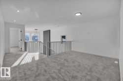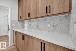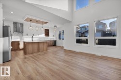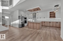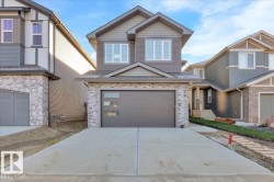 Welcome to your dream home in the desirable community of Hawks Ridge, NW Edmonton — just steps from scenic Big Lake ravines and walking trails. This luxury-built residence offers an open-to-above living room with soaring 20-ft ceilings and a feature wall finished in Italian silicone-patterned paint. The full-length kitchen boasts premium cabinetry, upgraded quartz island and countertops, under-cabinet lighting, a built-in wine fridge, and a walk-through butler’s pantry. The main floor also features a private den, stylish half bath, and mudroom with built-in shoe racks. Upstairs includes a spacious bonus room, laundry, and three bedrooms, including a luxurious primary suite with walk-in closet and spa-inspired ensuite. Additional highlights: side entrance for future suite potential, gas line for BBQ on the deck, and oversized garage with hot/cold taps and a man door. All appliances included. Move-in ready and crafted for comfort, quality, and elegance throughout.