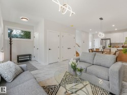 Brand New Inglewood Beauty!! This Fully Finished Stunning 1,607 sqft. 2-storey half duplex offers modern finishes, a functional layout, and an unbeatable location. The open-concept main floor features a sleek kitchen with quartz countertops, stainless steel appliances, and a spacious dining area that flows into a cozy living room with an electric fireplace. A versatile den and durable vinyl flooring complete the main level. Upstairs, the primary suite boasts a walk-in closet and 4-pc ensuite, along with two additional good size bedrooms, a full bath, and convenient upper-floor laundry. The fully finished basement adds a large rec room, a fourth bedroom, and a full bath—ideal for guests or family. Enjoy outdoor living on the 10’x10’ deck, in the fully fenced & landscaped backyard, or in your double detached garage. Located in family-friendly Inglewood on a Quiet Street — Steps to Schools, Parks, Daycare, Transit and Minutes to Downtown, U of A, and NAIT. New Home Warranty for peace of mind. Must See !!!!!