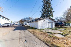 Located on a large corner lot, this property features flexible zoning suitable for residential living or small-scale commercial uses, including food and beverage service, health services, office space, or child care. Whether you’re seeking a comfortable home or a strategic business location, the options are impressive. Ideally situated close to NAIT, retail, parks, and the LRT, with quick access to Downtown. It’s also just a 10-minute drive to the University of Alberta, Royal Alexandra Hospital, and Rogers Place—offering excellent urban convenience. This charming detached bungalow provides generous living space with 4 bedrooms, 1.5 baths, and a half-finished basement. A double detached garage offers ample parking and storage. Character details include bay windows and a traditional layout with separate kitchen, dining, and living areas. The home also features a laundry room and a separate rear entrance to the basement.
