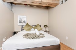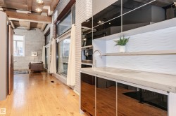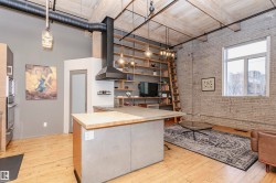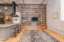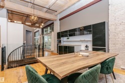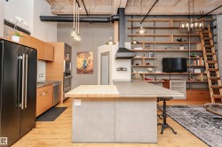 HERITAGE MEETS MODERN IN THE ICONIC JOHN DEERE SEVENTH STREET LOFTS! Discover a rare blend of Edmonton history and contemporary design in this stunning loft, set within the heritage side of the historic John Deere Building—one of Downtown’s most recognizable architectural conversions. If you’re craving something truly unique, this urban sanctuary delivers. Spanning 1,776 sq. ft. over two dramatically designed levels, this loft embraces its industrial roots with exposed brick, original concrete elements, 13-foot ceilings, and beautiful hardwood floors. The spacious open layout features 2 bedrooms, 2 full bathrooms, and in-suite laundry, all wrapped in authentic character you won’t find in newer builds. The kitchen blends style with function, showcasing concrete countertops, modern cabinetry, and a layout perfect for entertaining. Enjoy the convenience and comfort of heated, secure underground parking—a must in downtown living. Located steps from Rogers Place, Ice District, and Farmers Market. WELCOME HOME.