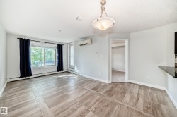 Welcome to McConachie - this is the one! Spacious 763 sq.ft main floor unit with 2 bedrooms, 2 bathrooms, den, 2 parking stalls, in-suite laundry and A/C, all in one stylish package! Enter this well-maintained unit and you are greeted with an open and bright floor plan, new flooring, and window view of mature trees. The kitchen boasts a peninsula style island with s/s appliances. The living and dining areas blend seamlessly together offering easy access to the south-facing covered patio. This unit faces McConachie Dr., providing the added benefit of convenient street parking and direct access to the unit perfect for you and your guests. The primary bedroom has a walk-through closet and private 4-piece ensuite with tiled shower. The second bedroom is also a good size able to fit a queen size bed. Complete the package with the heated underground and surface parking stalls. The complex is pet-friendly and within walking distance of schools, bus stops, & more amenities by vehicle including the Anthony Henday.