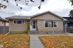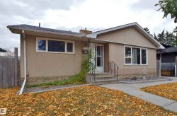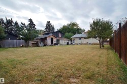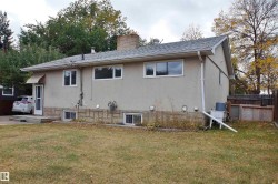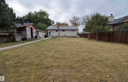 Fantastic opportunity for a growing family or investor. Recent renovations include shingles, PVC windows, Hot Water Tank and brand new H/E Furnace, making this home energy efficient, which saves you money. Huge living room anchored by a corner, stone facing, wood-burning fireplace. 5-bedroom have large windows, both bathrooms seen upgrades in recent years. L-shaped kitchen has a window overlooking the back yard. Spacious dining nook can accommodate a large table for a growing family. Back entry to developed basement, 2 more bedrooms, full bathroom, cold storage room and family room, perfect for quiet evenings at home. Huge 905 m2 lot, fully fenced with back-alley access. Great site to build your future home. Front drive access to garage can easily accommodate an RV or 4 vehicles. Fruit trees and large shed with power. Plenty of space to build future oversized garage or shop. Great location, quiet tree-lined street with quick access to Yellowhead, bus service and shopping.