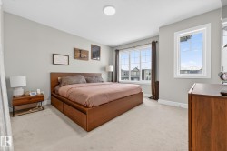 Well maintained half duplex, minutes to St Albert, offering exceptional space, thoughtful design, and unbeatable location! 3 bedrooms, a bonus room, double car garage, this home delivers both comfort and convenience for busy families. Step inside to a bright and inviting main floor with an open layout and a custom built entertainment system that anchors the living room. The kitchen and dining areas flow seamlessly together, offering plenty of room to cook, gather, and entertain. Upstairs, you’ll find three generously sized bedrooms, including a spacious primary suite, plus a versatile bonus room ideal for a home office, gym or playroom. A side entrance adds extra flexibility for future development or separate access. Outside, enjoy a low maintenance yard, landscaped and fenced, plus a charming front porch where you can sip your morning coffee and take in the view of the playground directly across the street. This rare half duplex offers style, functionality, and location all in one. Immediate possession!