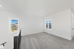Check out this beautifully designed corner house with 4 bedrooms, 3 full bathrooms, a kitchen with a walk-thru pantry, living room open to below, dining area, upstairs laundry, a bonus room, and a side entrance to the basement. The upgraded kitchen features quartz countertops, upgraded cabinets with glass, pot & pan drawers, and built-in appliances. All 3 levels have 9 ft ceilings, and the open-to-above living room boasts large windows and a fireplace. Other upgrades include a custom master shower with a bench, a high-efficiency furnace, an upgraded roof and insulation, soft-close features throughout, upgraded railings, MDF shelving, upgraded lighting and plumbing fixtures, upgraded hardware, gas lines to the deck, kitchen, and garage, basement rough-ins, and additional windows due to the corner lot location. The upgraded exterior elevation includes stone, premium vinyl siding, and front concrete steps. It's also walking distance to a pond, trail, and park.