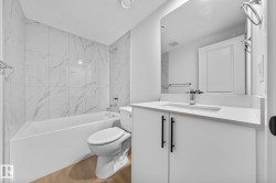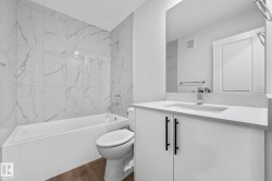 LEGAL SUITE • Quick Possession • Brand New by Art Homes Amazing opportunity for first-time buyers or investors! This quality-built half duplex offers a smart, functional layout with income potential. The main floor features a convenient bedroom and full bath, perfect for guests, in-laws, or a home office. The bright open-concept living area is filled with natural light from oversized windows, and the detached double garage adds secure parking and storage. Upstairs offers 3 comfortable bedrooms and 2 full baths, including a beautiful primary suite with a spa-like ensuite and walk-in closet. The 1-bedroom fully legal basement suite is an excellent mortgage helper or rental option. Ideally located near schools, parks, trails, shopping, transit, Anthony Henday & Ellerslie Rd. Eligible buyers may qualify for the GST New Home Rebate. Live in one suite and rent the other—smart, flexible, and affordable living!