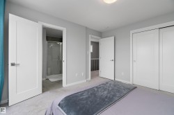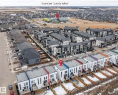 Welcome to Keswick—one of Southwest Edmonton’s most desirable communities—& a standout End Unit townhome with no condo fees. Offering 1,465 sq ft of upgraded, open-concept living, this home delivers the perfect blend of style, function, and long-term value. The main floor impresses with floor-to-ceiling windows that flood the space with natural light, creating a bright & inviting atmosphere. The modern kitchen is designed to elevate everyday living, featuring quartz countertops, a large island, sleek cabinetry, & stainless steel appliances seamlessly connecting to the living and dining areas. Upstairs, you’ll find 3 bedrooms, 2 full bathrooms, & convenient upper-floor laundry. The primary suite offers a spacious closet & a private ensuite with a glass shower. Enjoy your fully landscaped yard & deck rare for a townhome plus a double attached tandem garage over 31 feet deep, providing exceptional space for vehicles & storage. Complete with A/C & ideally located near parks, ponds & all amenities.