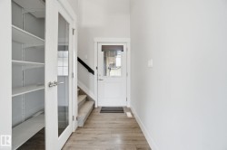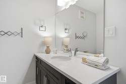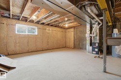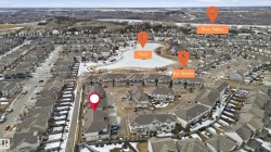 BACKS ONTO WALKING TRAIL, SOUTH-FACING YARD, STEPS TO POND! Welcome to this beautifully maintained, original-owner home offering the perfect blend of comfort and functionality. Bright, open main floor with soaring 9’ ceilings and a grand entry. Durable laminate flooring throughout, plus ceramic tile mudroom and convenient half bath. The kitchen features quartz countertops, undermount sink, Whirlpool appliances, Vesta hood fan, and 2 pantry closets. Upstairs offers 3 spacious bedrooms, 2 full baths with matching quartz finishes, and laundry with front-load washer/dryer and floor drain. The primary suite includes a walk-in closet with window. Enjoy a sunny south-facing backyard with private deck and low-maintenance finish. Condo fees $265/month include snow removal and lawn care. Double attached garage, security system, and unfinished basement ready for your vision.