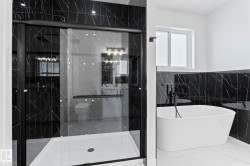 Welcome to Klarvatten! this exceptional residence boasts a WALKOUT BASEMENT that overlooks a serene dry pond. The open-to-above great room, convenient mudroom, main floor Bedroom, and walkthrough pantry to the chef’s kitchen and spice kitchen enhance the home’s functionality and elegance. Upstairs, the primary suite offers a luxurious walk-in closet and 5 pc ensuite. The spacious family room and 3 more bedrooms, upstairs laundry and a full bath adds to the home’s appeal. Additional highlights include BBQ gas line, triple-pane windows for improved energy efficiency, garage drain, and 9-foot ceilings on both the basement and main floors. The home also features MDF shelving, ceiling-height kitchen cabinets, and quartz countertops. Located just minutes from major shopping centers, K-9 schools, the military base, and with easy access to the Anthony Henday, this home combines convenience with luxury. MUST SEE!