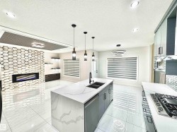 Discover this luxurious BUILT GREEN custom home in Laurel, offering over 3,900 sq. ft. of TOTAL living space, including a fully finished basement with SEPARATE ENTRANCE featuring 2-BED LEGAL SUITE plus bachelor option. The home boasts DUAL MASTER bedrooms with walk-in closets and 5-pc and 4-pc ensuites, one opening to a covered DURA DECK BALCONY. Upon entry, the living space features open-to-below ceiling with magnificent chandelier, a bedroom with a 4-pc ensuite flowing into a second spacious living area with a feature wall and electric fireplace. The chef’s kitchen offers sleek cabinetry, a large island, gas cooktop, stainless steel appliances, granite/ quartz countertops, and a main-floor SPICE KITCHEN. Upstairs offers 4 bedrooms and 3 full baths, while the basement includes 3 bedrooms, a kitchen, and 2 4-pc baths. Additional highlights include detailed ceilings, feature walls, chandeliers, custom blinds, 9-ft basement ceiling, fully landscaped backyard, and spacious double garage with 9-ft door.