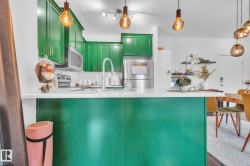 This owner-occupied show-stopper 2-bed, 2-bath condo is like no other. Boasting an updated kitchen with new counters and pendant lighting, elegant wainscoting, fresh paint, and in-suite air conditioning, it offers a perfect blend of style and comfort. The open layout is bright and welcoming, with a spacious primary bedroom featuring a full ensuite and ample closet space. Enjoy the convenience of in-suite laundry, a balcony for outdoor relaxation, and 1 underground heated parking stall. Condo fees cover all utilities, making ownership stress-free. Ideally located in The Village at Walker Lakes, you’re close to trails, schools such as Shauna May Seneca and Corpus Christi, shopping at South Edmonton Common, and have quick access to Ellerslie Road and Anthony Henday. A rare find combining luxury, convenience, and unbeatable value.