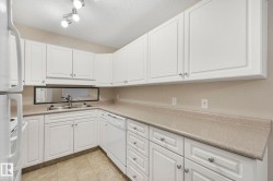 This 2 BED, 2 BATH, 2ND FLOOR unit with a functional layout feels instantly welcoming. Enter to find an open concept space that seamlessly connects the dining area, kitchen, living room, and BALCONY overlooking green space; perfect for fresh air, a BBQ, and private outdoor space. The 2 bedrooms are on opposite ends of the unit for maximum privacy; the primary bedroom includes a WALK IN CLOSET and ENSUITE. The unit features IN SUITE LAUNDRY for convenience, with HEAT and WATER INCLUDED in the condo fee to help maintain predictable costs. It also comes with 2 TITLED PARKING STALLS (1 UNDERGROUND and 1 surface) and a STORAGE LOCKER and visitor parking for when friends visit. This adult only building offers a social room and ELEVATOR, simplifying moving in and everyday activities. Steps from the river valley, walking trails, groceries, parks, and recreation facilities, and with a bus stop just two minutes away, this home provides a serene, connected environment that enhances daily living. Virtually staged.