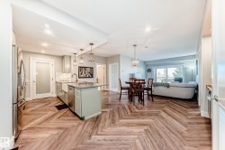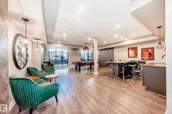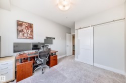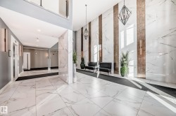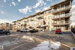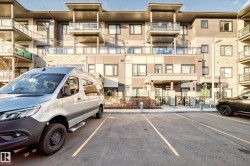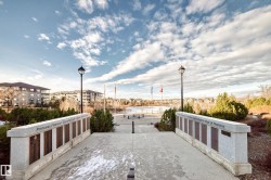 Beautiful Griesbach executive style 1,130 square foot, 2 bedroom, 2 bathroom, 2018 built, 3rd floor condo, in and incredible location backing onto greenspace and lake. The main floor has vinyl plank flooring, separate wet bar with mini fridge, and a great open floor plan with eat up island style kitchen having 2 tone cabinets, quartz countertops, upgraded stainless appliances, walk in pantry & sliding doors to a large balcony. The spacious primary bedroom has walk-through closets, and a 4 piece bathroom. The second bedroom is located close to the main 4 piece bathroom. There are 2 titled parking stalls included underground #98 and surface stall #11. The area has many amenities just minutes away, including shopping, transportation, schools, walking trails, and much more. The Veritas condominium complex has a beautiful front entrance and many extras including, fitness room, air conditioning, guest room, social room, & visitor parking out front. This unit shows pride of ownership and shows a 10 out of 10