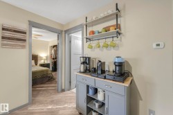 This beautifully upgraded 3rd-floor condo offers modern finishes and an unbeatable walkable location near the LRT, transit, Save-On-Foods, Commonwealth Stadium, Borden Park, Concordia University and the River Valley. The unit features updated flooring, fresh paint, modern lighting and a stylish new kitchen with SS appliances. The open living and dining space leads to a huge private balcony, perfect for relaxing, entertaining or enjoying the treed surroundings. The spacious, king-sized primary bedroom offers excellent closet space and plenty of natural light, while the second room makes an ideal kids room, office or flex room. The fully updated 4-piece bathroom showcases modern tilework, a newer vanity and a clean, contemporary design. Enjoy the convenience of in-suite laundry and impressive storage throughout. Located in a well-run building with many long-term residents, this move-in-ready condo is ideal for buyers or investors seeking a clean, modern home in a vibrant, amenity-rich neighbourhood.