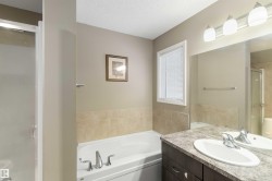 Beautiful duplex in Laurel with a newly finished basement and standout curb appeal! This 4-bed, 4-bath home offers a bright open-concept main floor with a spacious living room, functional dining area, and a kitchen featuring neutral cabinets, major appliances, and a large pantry. Upstairs includes a generous primary suite with a 4-piece ensuite, two additional bedrooms, a full bathroom, and linen storage. The fully finished basement adds a 4th bedroom and another full bath. Outside, enjoy a double detached garage and an ideal location just steps from a scenic pond, walking paths, parks, Meadows Rec Centre, Mill Woods Town Centre, schools, and the Anthony Henday.