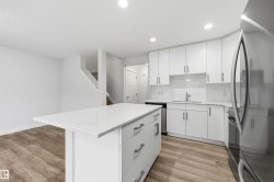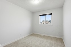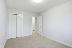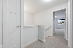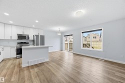 Stunning MOVE IN READY 3 bed/2.5 bath HALF DUPLEX in the desirable & family friendly neighborhood of Allard. BRAND NEW CARPET AND FLOORING IN UPSTAIRS BATHROOMS! Beautiful stone work & designer siding colors on the exterior. Main floor features a bright & sunny open concept layout & laminate floors. Functional kitchen includes an island w/ eating bar, tons of storage space, quartz countertops, sleek ceiling-height white cabinets, subway tile backsplash & stainless steel appliances. Dining nook steps out onto a deck & a generously sized South-East facing yard - perfect for the kids to play or relaxing summer evenings! Upstairs you'll find a spacious primary bedroom w/ 3 pc ensuite bathroom. Two other well-sized bedrooms, a full 4-pc bathroom & laundry room complete the upper level. Attached garage for added security & convenience. Steps to pond/wetland, green space, walking trails, shopping and schools. Easy access to the QE II hwy, Anthony Henday, EIA, transit & South Edmonton Common.
