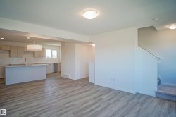 NO CONDO FEE!!! GREAT VALUE!!! You read that right welcome to this is your last chance to own brand new row house unit the “Harlow” Built by StreetSide Developments and is located in one of Edmonton's newest premier north west communities of Kinglet at big lake . With almost 1300 square Feet, it comes with front yard landscaping and a double attached garage, this opportunity is perfect for a young family or young couple. Your main floor is complete with upgrade luxury Vinyl Plank flooring throughout the great room and the kitchen. Highlighted in your new kitchen are upgraded cabinets, upgraded counter tops and a tile back splash. Finishing off the main level is the laundry room. The upper level has 3 bedrooms and 2 full bathrooms. *** Home is under construction photos used are from the similar model recently built colors may vary, this home will be complete by December of this year ***