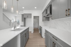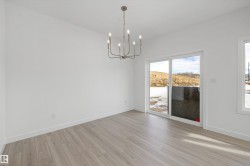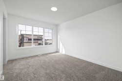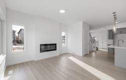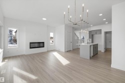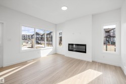 Built by Sterling Homes, this stunning front-attached residence in Kinglet occupies a prime corner lot, flooding the interior with natural light. The home is nestled in a serene NW Edmonton community defined by ponds, trails, and lush green spaces.The main floor boasts 9’ ceilings, triple-pane windows, and luxury vinyl plank flooring. A chef-inspired kitchen features quartz countertops, a chimney hood fan, built-in microwave, and a walk-in pantry. The open-concept great room, anchored by an electric fireplace, flows seamlessly to the backyard via sliding patio doors. Upstairs, a flexible bonus room complements the bright primary suite, which offers a walk-in closet and a dual-sink ensuite. Two more bedrooms and convenient upper-floor laundry complete the level. Notable extras include a separate side entrance, mudroom with built-in storage, and a double garage with a floor drain. This home perfectly balances modern luxury with future potential.