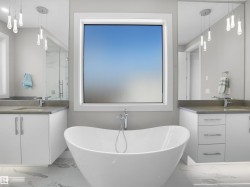 This exquisite 6-bedroom, 6-bathroom home offers high-end finishes & exceptional design. Features 2 full kitchens on the main level, a wet bar in the basement, & a heated triple-car garage with sink, drainage & EV charger. Grand double-door entrance, spacious foyer, and great room with feature fireplace. The chef’s kitchen includes Huge U shape island with raised bar, quartz countertops, JennAir Downdraft Vent, under sink Vroom for kitchen and behind the cabinets it leads to hidden spice kitchen, Hidden 2nd fridge & concealed mudroom. Dining nook opens to an extended deck—perfect for entertaining. Upstairs: 4 bedrooms with ensuite access, balcony & laundry. The primary suite features a spa-style ensuite with heated floors and walk-in dressing room. The finished basement includes a rec area, bar kitchen, 7.1 home theatre System, bedroom & full bath. completed with Central A/C, sound system and Hide-A-Hose central vacuum on all floors, garburator, premium flooring, JennAir paneled fridge freezer.