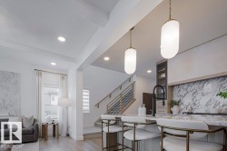 Built by Sterling Homes, this home blends efficient design with modern style, ideal for family living. The main floor features a double attached garage, side entrance, 9’ ceilings on both levels, and durable luxury vinyl plank flooring. A welcoming foyer leads to a half bath and a functional mudroom that connects to the kitchen through a spacious walk-in butler’s pantry with sink and built-in microwave—perfect for a coffee bar. The kitchen is the focal point, showcasing a large island, a Silgranit sink, quartz countertops, custom cabinetry, and a full-height tiled backsplash. The open-concept living and dining area includes a stylish fireplace, large windows, and patio access. Upstairs offers a bright primary suite with a 5-piece ensuite,4-piece main bath, and walk-through closet to the laundry, plus a bonus room, full bath, and two bedrooms with walk-in closets.