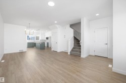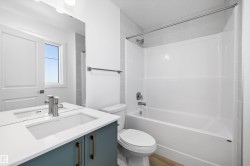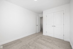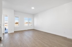 Experience modern comfort in this bright laned home by Sterling Homes, nestled in the nature-inspired community of Kinglet near Big Lake. The main floor feels open and airy thanks to 9’ ceilings, triple-pane windows, and a sun-filled living room. At the rear, a functional kitchen features quartz countertops, upgraded cabinetry, a pantry, and a sink window overlooking the backyard. Upstairs, the primary suite serves as a private retreat with its walk-in closet and glass-shower ensuite. Two additional bedrooms, a full bath, and convenient upper-floor laundry complete the level. Stylish luxury vinyl plank flooring runs throughout, while a separate side entrance and basement rough-ins offer excellent future development potential. Outside, the generous yard includes a parking pad ready for a future garage, all just steps from serene pond trails.