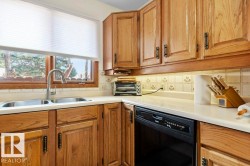 This well-maintained 1,218 square foot bungalow in Pollard Meadows is situated on a large lot along a quiet street and is close to schools, transit and the Gurdwara Siri Guru Singh Saba. The main floor features a sunken living room, dining room, kitchen, primary bedroom with a walk-in closet and two-piece ensuite, two additional bedrooms and a main four-piece bath. French doors of the kitchen to a raised deck with stairs to the back yard. A central staircase leads to the fully-finished basement featuring a family room with a wood burning Heatilator fireplace, utility room, cold room, two additional rooms that could be used as an office or craft room, and a three-piece bath. A large attached double garage with two single doors is complemented by a large driveway for plenty of extra parking.