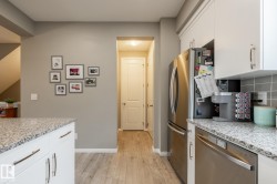 Welcome to WALKER, this beautifully designed townhouse offers the ultimate blend of function and comfort. Perfectly positioned facing green space and just steps from the park, this home features a dual primary suite layout, each with its own private ensuite. The main level showcases an open concept kitchen and living area, a thoughtfully designed great floor plan that maximizes flow and natural light. Perfect for everyday living and entertaining alike. Upstairs, enjoy the versatility of an open flex space, ideal for a reading nook, play area, or second workspace. Main floor den/office facing the green space. Additional highlights include a double attached garage, low condo fees, Central AC, and a walkable location near green space and park, making this home as practical as it is enjoyable!
