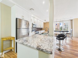 The CONDO FEES INCLUDE: HEAT, WATER & ELECTRICITY!!! FULLY RENOVATED CONDO IN OLIVER Walking Distance to the Legislature & Down town Core. This beautifully updated 2BR/2BA condo is just a block from Jasper Ave, river valley paths, dining & shopping. There is an LRT Station just across the street. The condo, in a well-managed building. It features ceramic and laminate flooring, a modern kitchen with granite counters, stainless appliances, and under-cabinet lighting. Enjoy west-facing views of downtown and the river valley through large windows. The living area is roomy with a flexible space for an office or reading area. The primary bedroom offers ample closet space and a fully renovated ensuite bathroom. The second bedroom and main bathroom are nicely decorated and spacious. Extras include an fabulous balcony, in-suite laundry, underground parking, and a storage locker. The building boasts a gym, social rooms, sauna, and outdoor patio. This is not just a condo it is a home waiting for you!