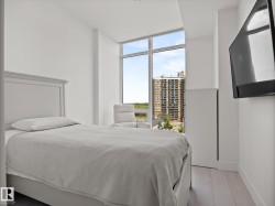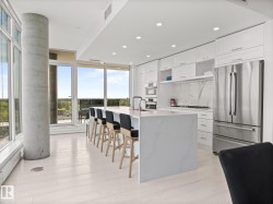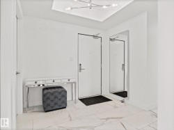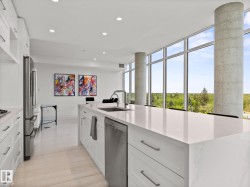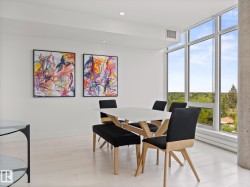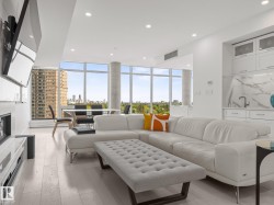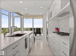 Luxurious 2-bed + den & 2-bath corner unit offering panoramic views, premium upgrades, & exceptional value. This open-concept layout features floor-to-ceiling windows, upgraded Bosch appliances & custom wet bar. The primary suite boasts a custom shoe-closet & spa-like ensuite with heated floors & tiled shower. Enjoy an in-suite storage room & two titled underground parking stalls, each with a secure storage cage. Building amenities include a concierge; car wash; hotel-inspired guest suite; expansive rooftop lounge; indoor social space with kitchen, boardroom & billiards; fitness centre; pet wash & dog run. Restaurants, boutiques, the new LRT line, & more are an elevator ride away. Access shopping centres, UAlberta, the river valley, & the downtown core within minutes. Located in one of Edmonton’s most prestigious communities, this residence offers a luxury lifestyle for professionals, families, and retirees alike.