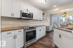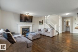 This beautifully maintained family home is sure to impress! Featuring AC, 4 bedrooms, 3.5 baths, a SECOND KITCHEN & SEPARATE ENTRANCE, this property offers exceptional versatility. Hardwood flooring welcomes you into a bright, spacious foyer that opens to the great room. The kitchen boasts updated white cabinetry, SS appliances, corner pantry & island overlooking the dining area & cozy living room with fireplace. A den, 1/2 bath & main floor laundry complete the main level. Upstairs, you'll find a generous bonus room with vaulted ceilings, along with a king-sized primary suite offering a walk-in closet & 4pc ensuite. 2 additional large bedrooms plus a full 4pc bath complete the upper floor. The basement is ideal for extended or multi-generational living, featuring a 2nd kitchen, large family rm, 4th bdrm, 4pc bath, 2nd laundry, & separate entrance. Enjoy the fenced & landscaped yard with entertaining sized deck & patio. Complete with a double garage & located just steps to parks, trails & shopping.