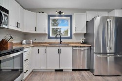 Here's a chance to own your own piece of paradise! The Summer Village of Half Moon Bay is a fabulous community offering a PRIVATE GATED BEACH only a 2 minute walk away from your front door!! Put your boat in the clear spring fed water of Sylvan Lake and enjoy all the lake has to offer plus the PRIVATE SANDY BEACH offers family fun all summer with a volley ball net, covered deck with fridge, BBQ, picnic tables, folding chairs and a storage shed for paddle boards! There is a community dock (annual fee to use and maintain) plus this family and pet friendly community has a nearby private pickleball court and basketball court! This year round home was built in 2005 and sits on a large, beautifully landscaped yard with a lovely covered rear deck with composite deck boards, outside shower to take care of the beach sand and stunning timber framed fire pit area on a paver stone patio!! The large rear entrance will welcome it’s new owners with access to a full 3pce bath, laundry with sink, a ground level bedroom plus double attached garage. Upstairs is where you’ll find an open concept main level with a nicely connected kitchen/dining/living area, 2 bedrooms, and a four piece bath. A high capacity well produces plenty of water, and a 1200 gallon septic tank is positioned near the front of the house for easy pump out access, and a 5' crawl space with plenty of custom shelving for storage! There are many nearby trails to enjoy walking or biking and the Town of Sylvan Lake is a short drive away. A lifetime of memories awaits at Half Moon Bay!