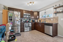 Welcome to Your Oasis in Leduc! This upper-level unit in a professionally managed condo complex is the ideal starter home or investment property. With three spacious bedrooms and an open-concept layout, it offers comfort and functionality for a growing family. Step out from the kitchen onto your private deck — perfect for morning coffee or evening relaxation. Enjoy the convenience of in-suite laundry and a well-appointed kitchen, making daily chores a breeze. Privacy is a key feature here, with no shared hallways and two assigned parking stalls just steps from your front door. The family-friendly layout is complemented by a common picnic area within view of the unit, providing a convenient and safe spot for kids to play — almost like having a built-in babysitter! Currently rented at $1,600/month, this property is a turn-key investment opportunity or a move-in-ready home. Basement unit available as well!