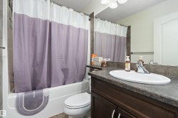 Welcome to this impressive 3 Bedroom home nestled in the desirable family community of Southfork Leduc. This fully finished home perfectly balances modern comfort with smart functionality. Step inside to discover updated luxury vinyl plank flooring and contemporary lighting that creates an inviting atmosphere at every corner. The heart of the home features a cozy fireplace in the Living Room opening up into your Dining Room & Kitchen featuring new appliances & a boujee high tech sink like you've never seen! Upstairs Laundry! A spacious Master Bedroom showcasing a large Walk-in Closet & En-suite with rain shower. Air Conditioning! Quality and comfort all the way! The finished Basement offers another entertaining space, Bedroom & Bathroom. Perfect for hosting guests or a growing family. Relax out back on your deck or play in your fenced yard. Yet another great space to unwind. A huge parking pad in the back awaits your future garage development. Steps away from playgrounds, walking paths & school. Enjoy!