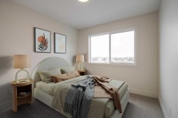 Welcome to the "Comrie" by Stranville Living, located in the desirable Lethbridge community of Southbrook. This new home is situated merely a few hundred meters from Dr. Robert Plaxton K-5 public elementary school, whose property includes a new playground, soccer pitch, baseball diamond, and a basketball court. Southbrook is conveniently located minutes away from big box shopping, various restaurants, and the VisitLethbridge.com arena and event center. This award-winning two storey home is well laid out and boasts a main floor rivaled by few homes of this size. It incudes a beautifully appointed kitchen with Adora Cabinets with gold accents extended to the ceiling, fully tiled backsplash, and quartz countertops for both the base cabinets and island. Stranville Living's top tier appliance package includes a seamlessly integrated paneled Fisher & Paykel fridge, paneled dishwasher, induction cooktop, built-in hood fan, and a stainless steel wall oven and microwave combo unit. There is a set of base cabinets with matching quartz countertops and floating MDF shelving in the butler's pantry, which walks through to the mudroom and garage entry. The centerpiece of the living room is a linear fireplace set into a tiled build out with a painted MDF mantle surrounded by a set of large windows that face west and provide ample natural light. Adjacent to the dining room is a large sliding glass door that exits onto your future deck and rear yard that backs a serene green strip with walking paths. The upper level includes a great primary bedroom with a huge walk-in closet and ensuite, two more bedrooms, a main bath, as well as a media room and large laundry room. High efficient mechanical equipment, Low E windows, and spray foam in the rim joists help keep your heating ad cooling costs in check. Very cool house on a terrific street in south Lethbridge! Photos contain virtual staging. There's nothing like NEW!